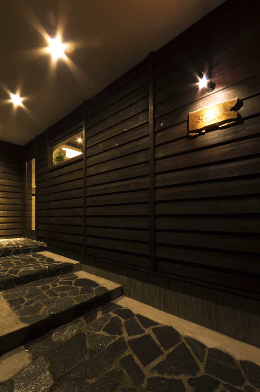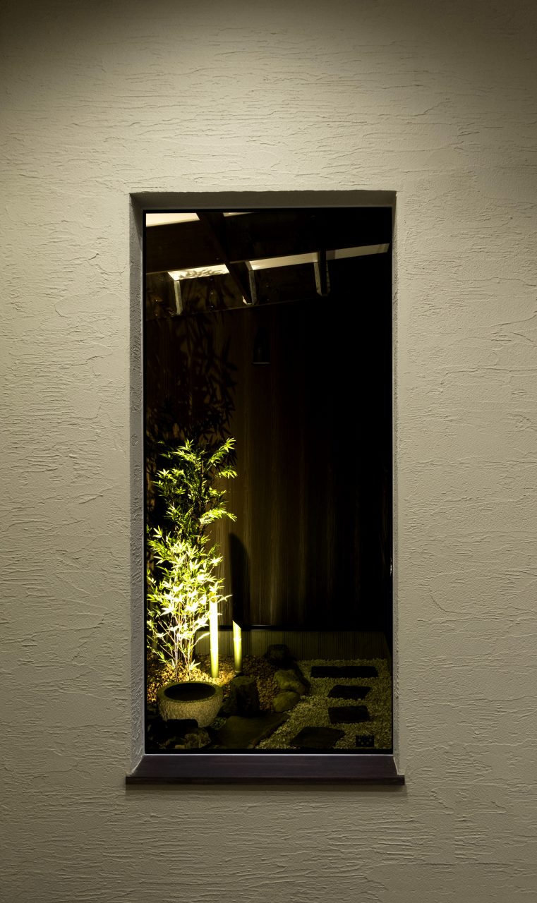 少し古民家のテイストを坪庭が和の方向に寄せてくれ間接照明が現代らしさをだしています。