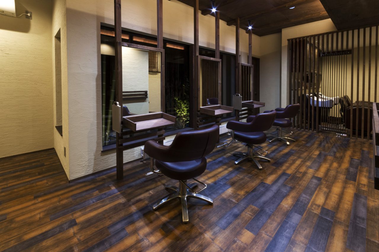和の美容室の依頼に情報量が少なく少しとまどいましたが外から中が見えない、非常識な発想のプランです。