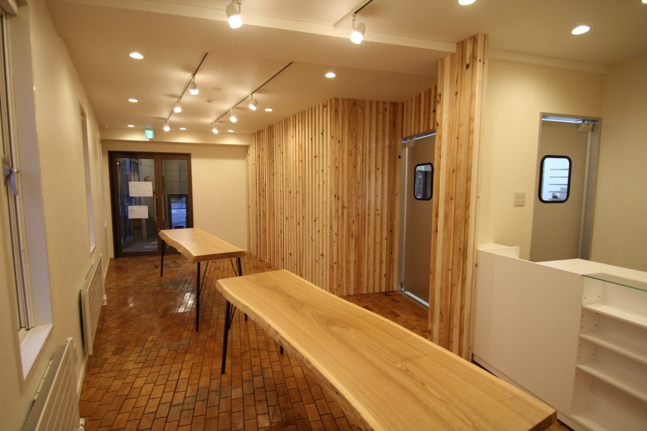 壁には道南杉を用い、床は老舗の喫茶店の床をそのまま使用、面影を残しました。
