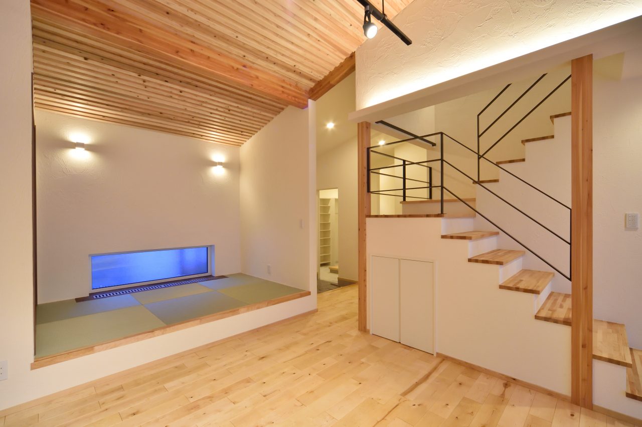 開放感のある勾配天井と真っ赤なCONCORDが主役のイエ。