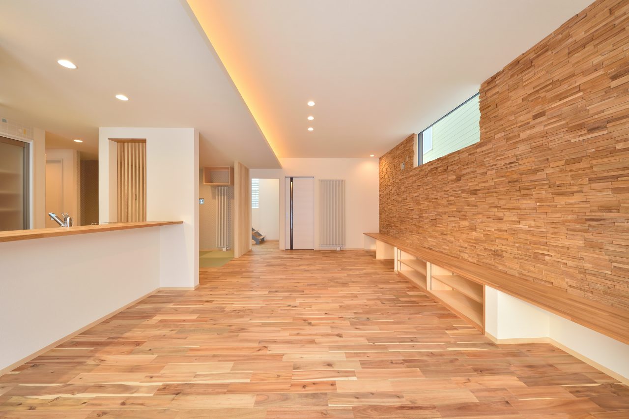 使用している材料は共通しているものの、親世帯と子世帯は雰囲気の違う空間になりました