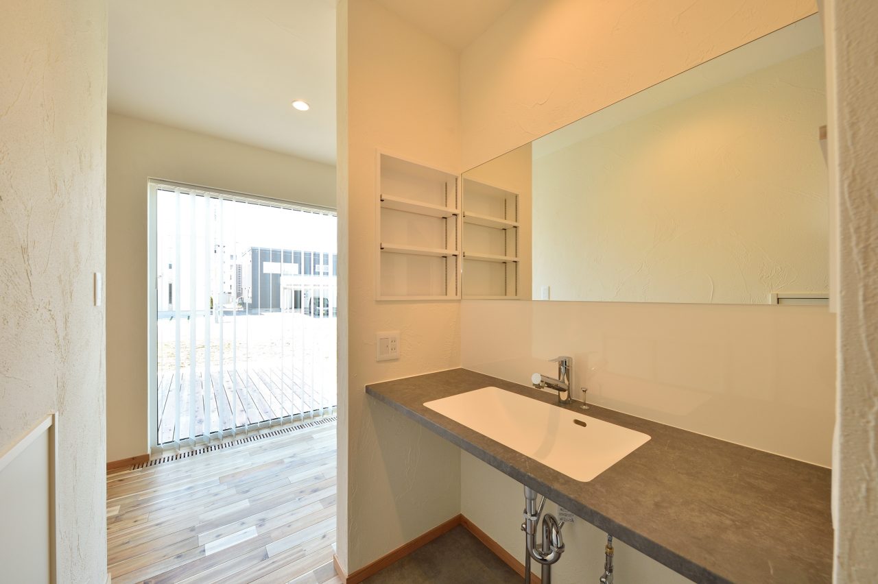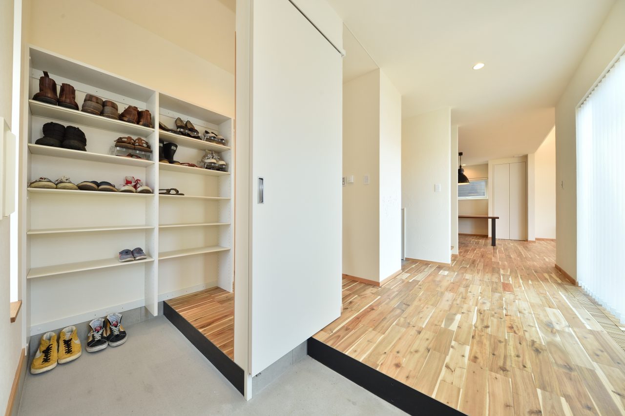 38坪の中に玄関ファミリーWIC、玄関からすぐの洗面