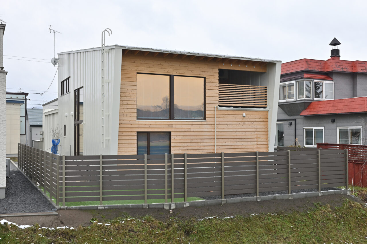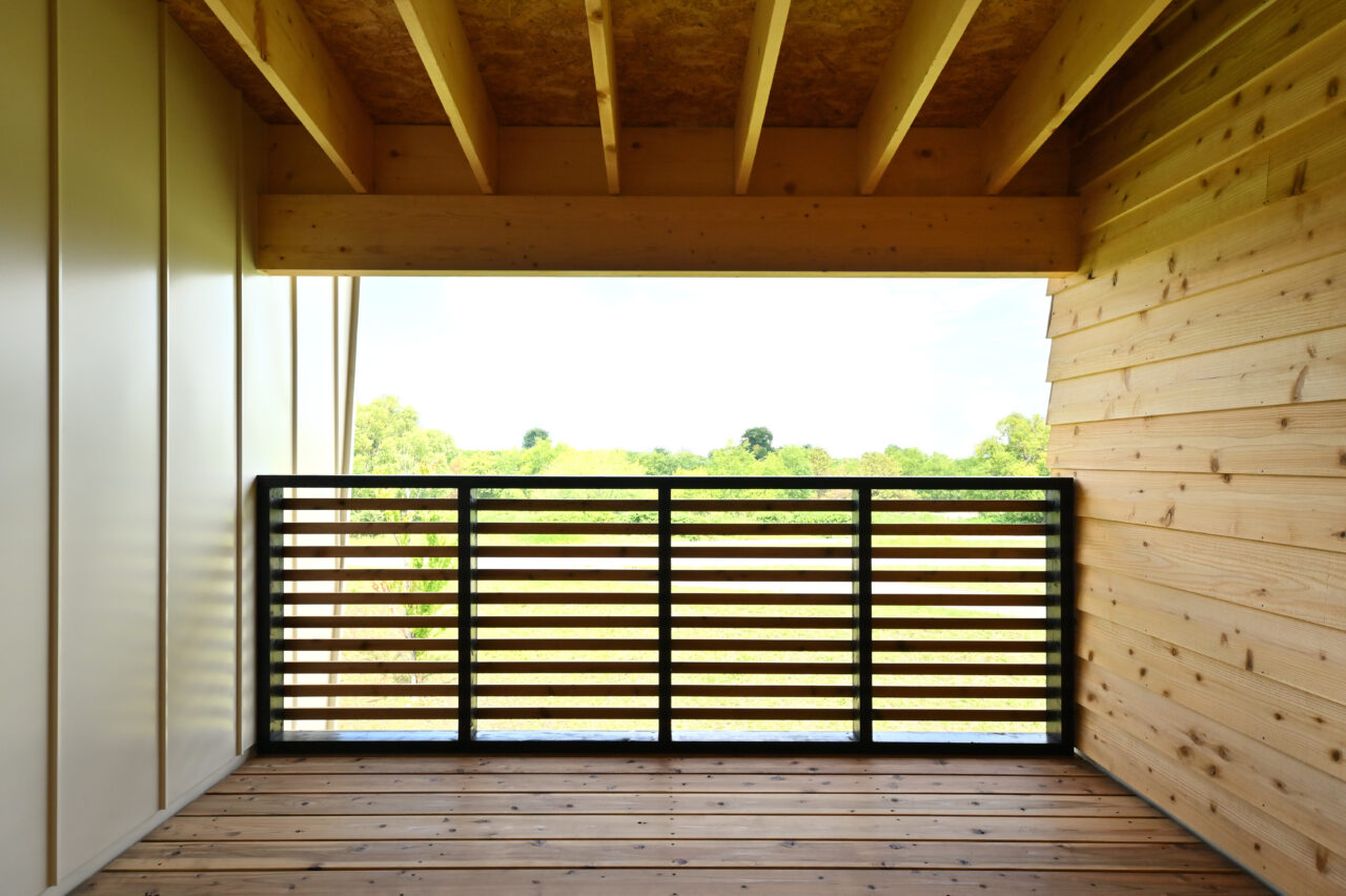 屋根と一体化した少し閉鎖的なテラスは近隣の視線を気にせず