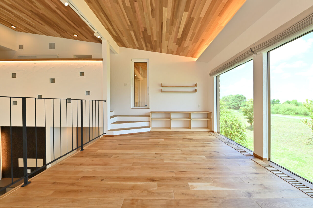 景観の抜群の土地、1階でも2階でもない高さが欲しくなりスキップフロアを計画しました